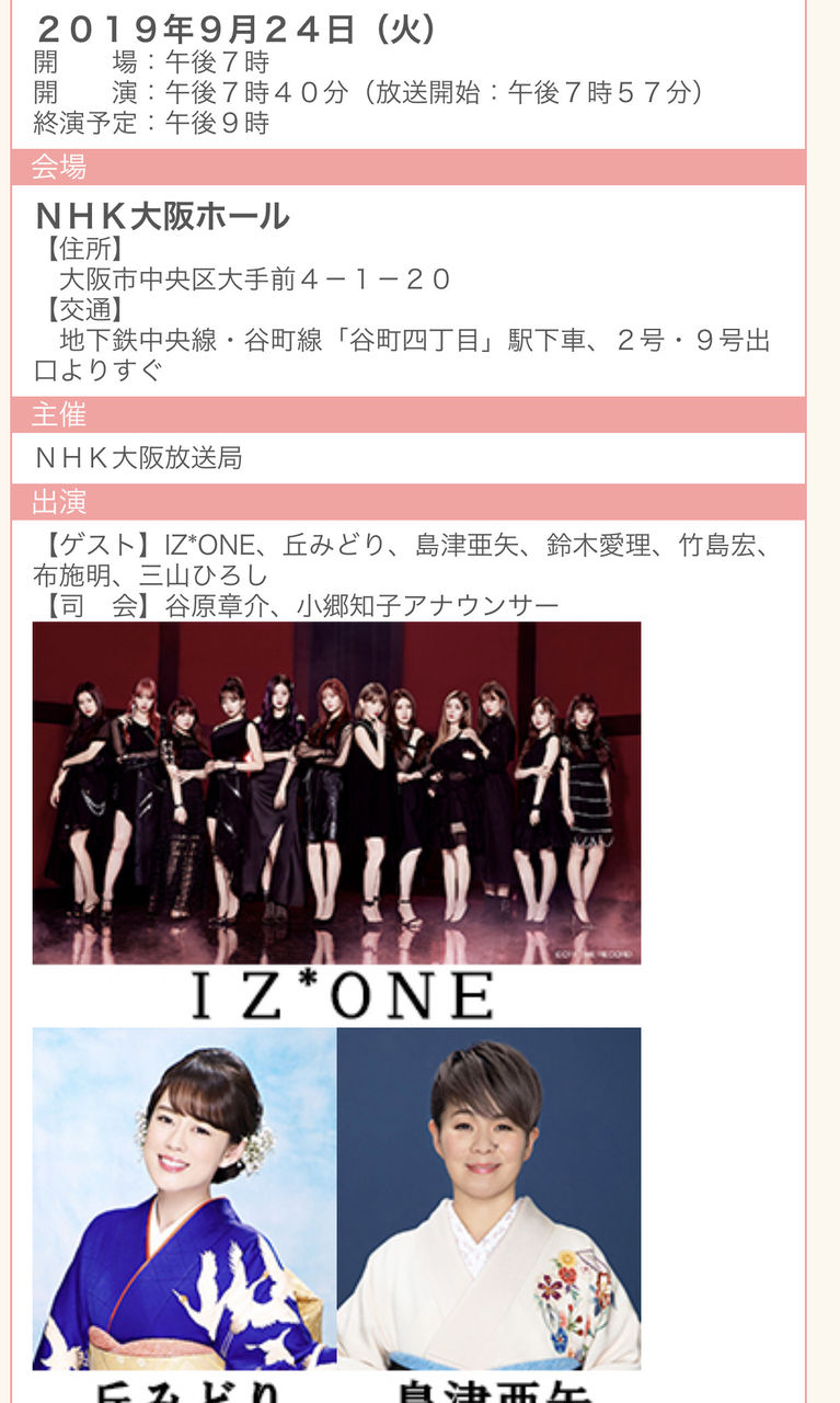 出演 IZ*ONE、丘みどり、島津亜矢、布施明、三山ひろしほか